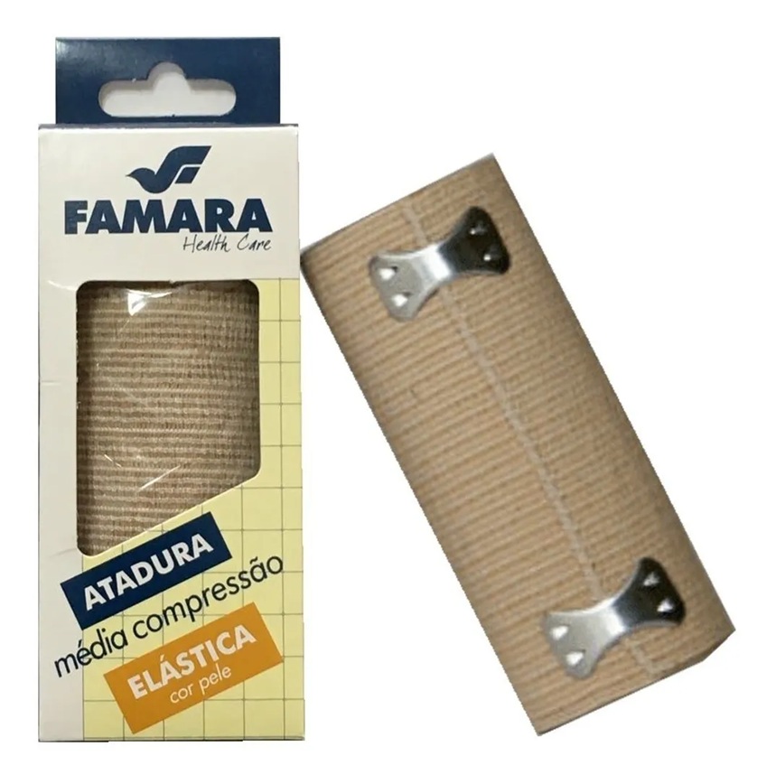 Atadura Elástica FAMARA – Média Compressão | 10cm x 1,30m | Cor Bege