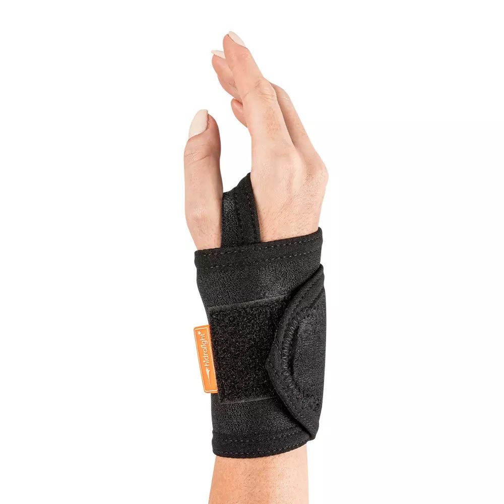 A Munhequeira com Polegar Ajustável Hidrolight oferece compressão em torno do punho, melhorando a sensação de estabilidade da articulação. Essa compressão pode ser ajustada conforme necessidade através da aba com fecho aderente. O orifício para encaixe do polegar proporciona mais segurança para a articulação e facilita o ajuste do produto. Retém o calor devido ao material em neoprene, mantendo a região aquecida auxiliando no alívio da dor.