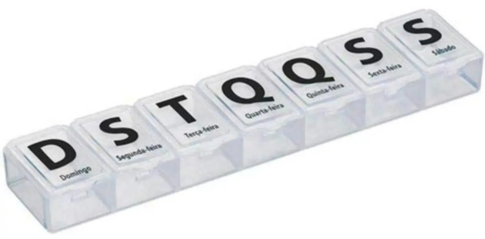 Otimizado composto por 7 divisórias com aberturas individuais, onde você pode guardar mais de um comprimido.